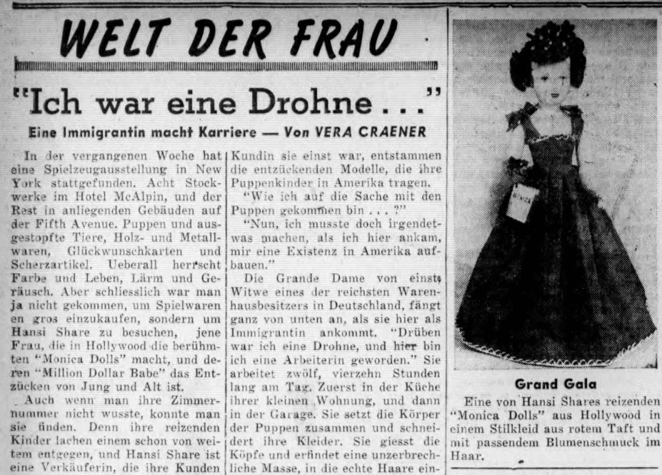 Fig. 3: Interview with Hansi Share, creator of the Monica Doll. Aufbau, March 28, 1947.