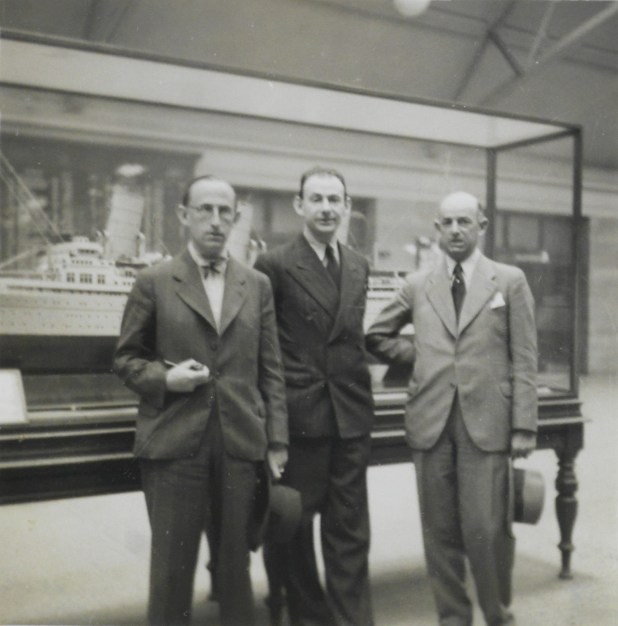 Fig. 2: Erich, Gershom, and Reinhold Scholem in Montreal, 1938 (from left to right). Erich and Reinhold Scholem were on their way to Australia via Canada. Gershom Scholem was in the United States as a visiting scholar; Gershom Scholem Archive, National Library of Israel, ARC. 4* 1599 10 47.