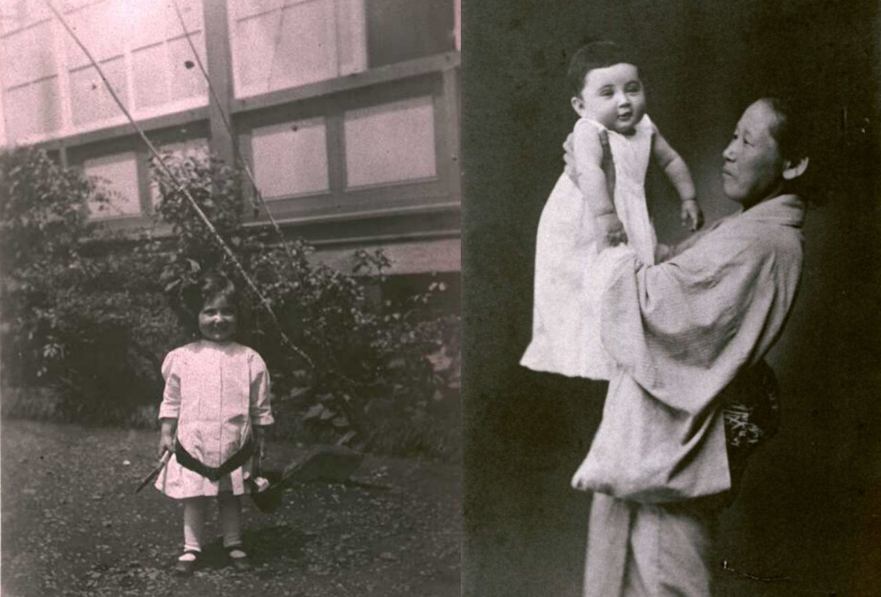 Fig. 1 and 2: Nora Tavor, née Heller, as a young girl in Yokohama, 1909 (left), and as a toddler with her Japanese nanny (right). Tavor was born in 1906 into a Jewish family from Prague that had settled in Yokohama’s growing Jewish community. Her father ran an insurance agency, and her mother was a Classical singer. Moshe and Nora Tavor Collection, AR 6148, F 80522 and F 50824, Leo Baeck Institute.