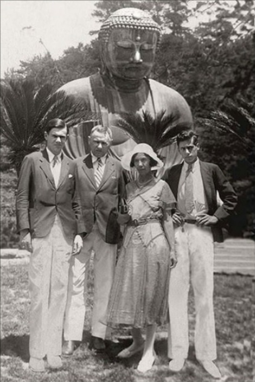 Fig. 5: From left to right: Hugo, Louis, Amy, and Ludy (Ludwig) Frank in front of the Great Buddha (daibutsu) of Kamakura, 1934. Gift of the Frank family. Courtesy of W. Puck Brecher.
