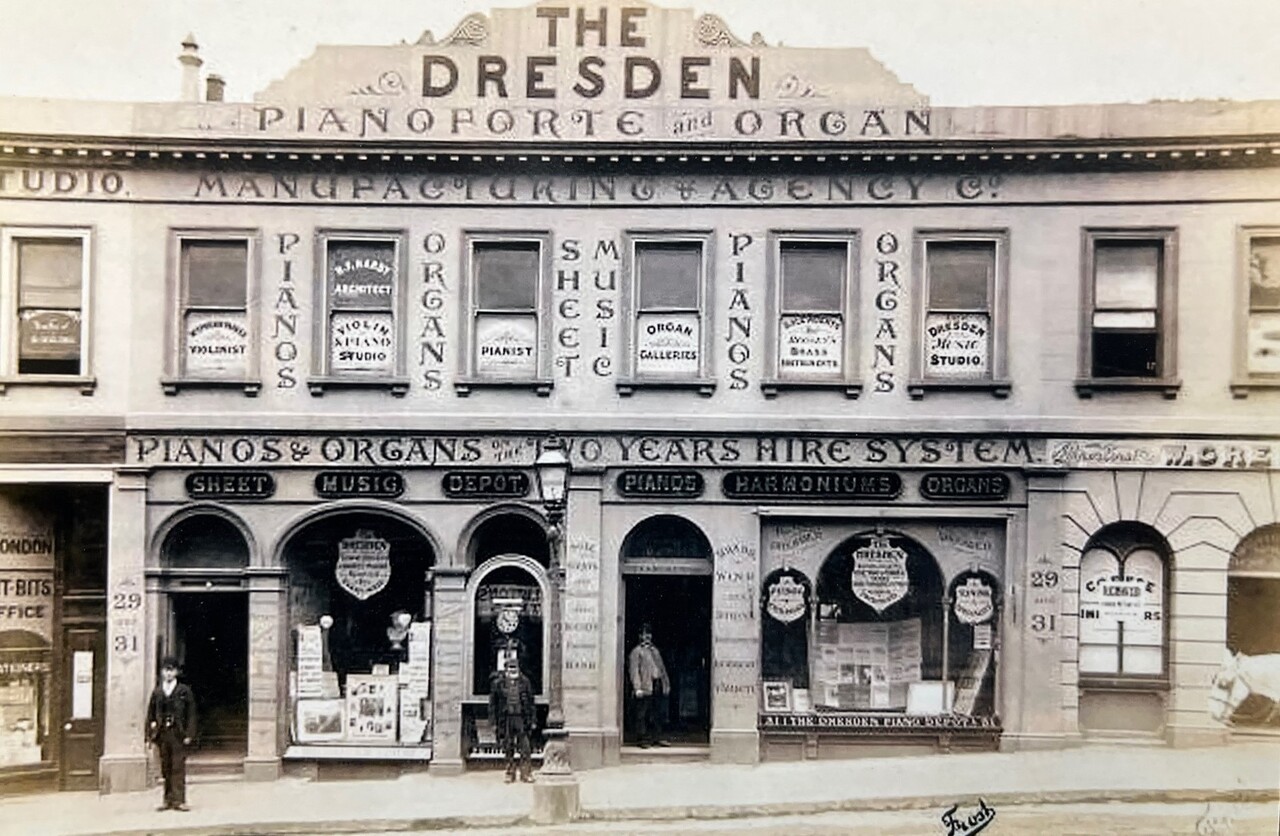 Fig. 2: David Theomin’s Dresden Pianoforte Manufacturing Company, founded in 1883, Dunedin; Dunedin Public Libraries.