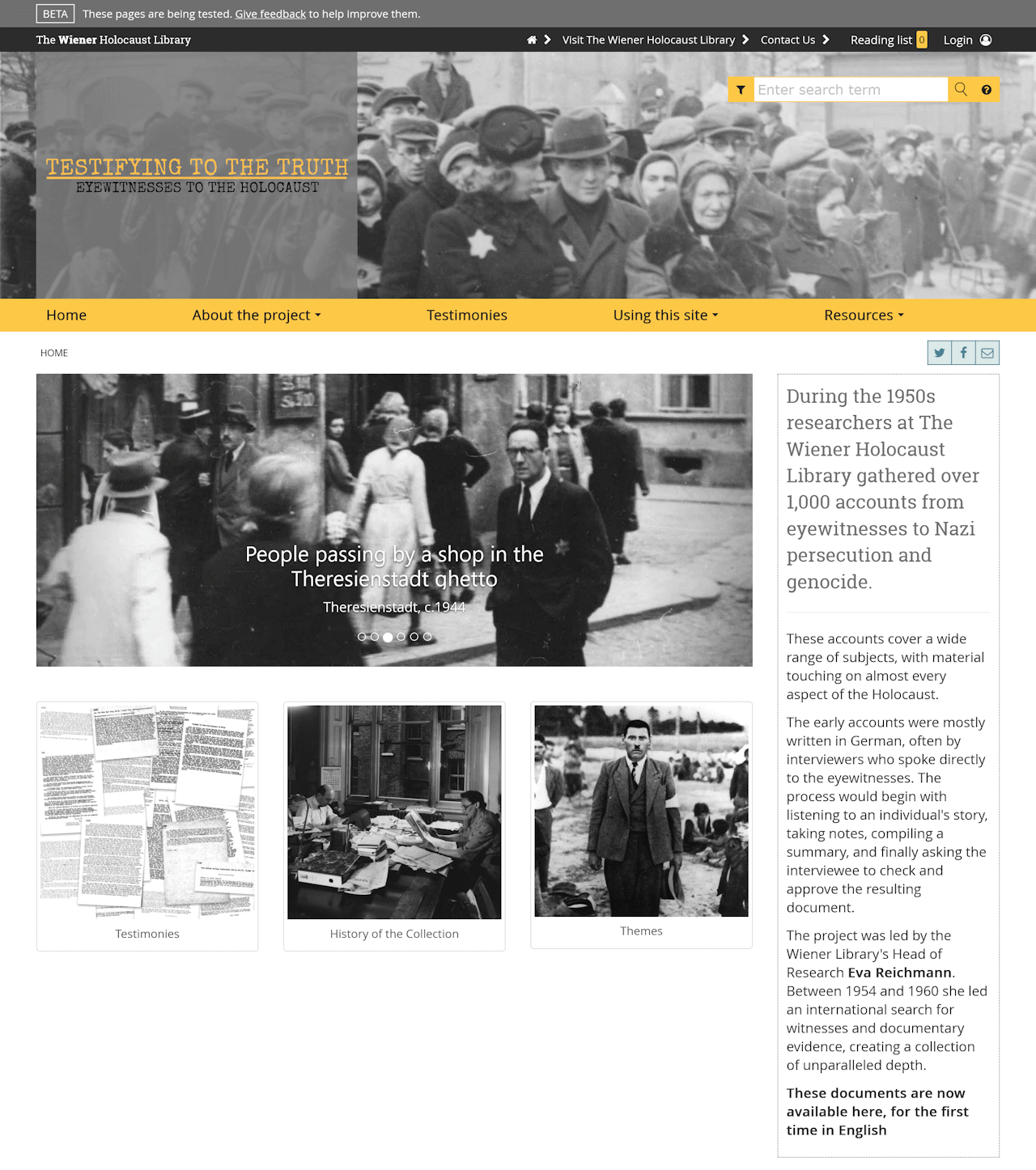 Fig. 1: Screenshot of the The Wiener Holocaust Library’s Testifying to the Truth Digital Resource, 2026.